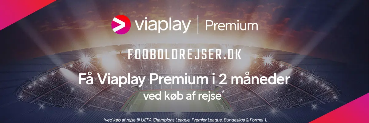 Vi har slået os sammen med Viaplay for at give dig et rigtig godt tilbud. Vi er glade for at kunne give dig chancen for at følge dine yndlingshold, både på stadion og på Viaplay Premium. Book en rejse og få 2 måneder Viaplay Premium.